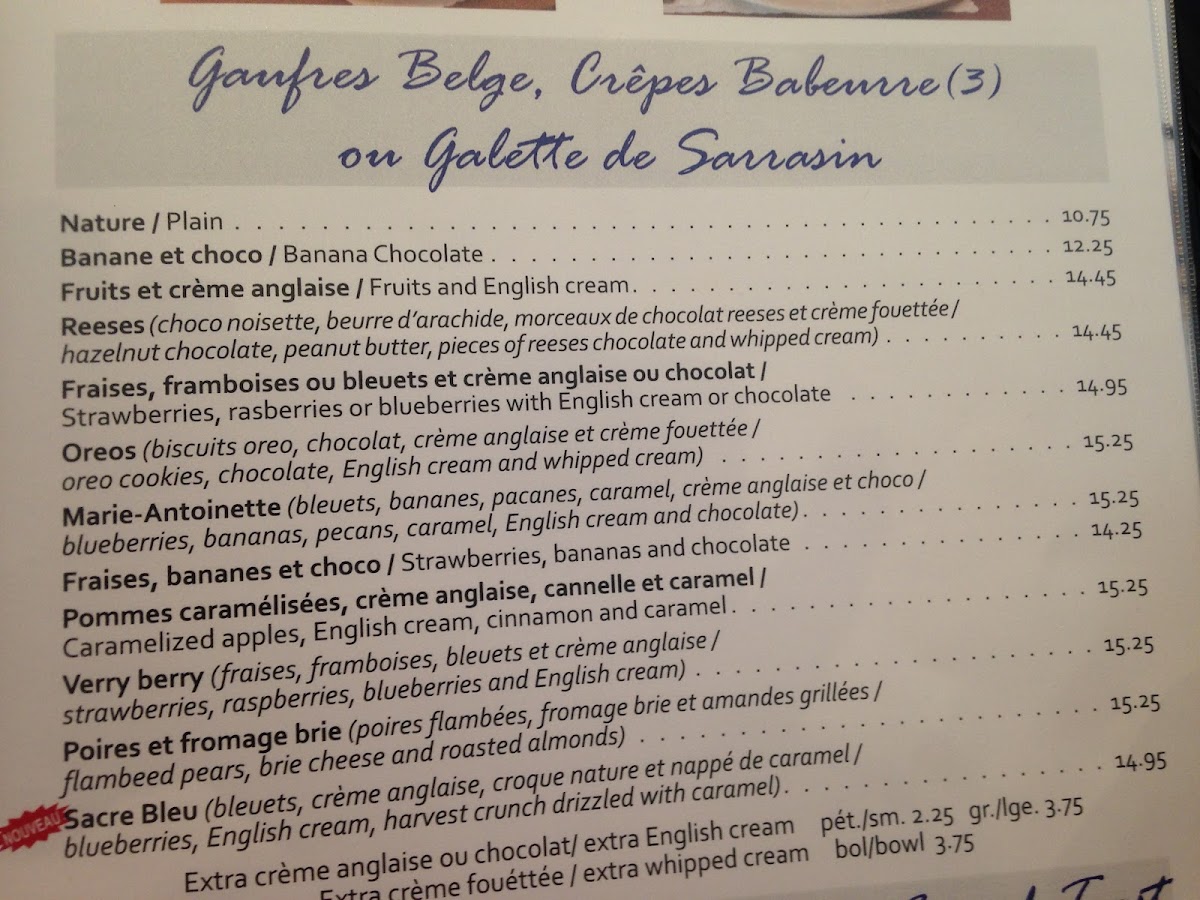 Bananes,Bleuets,Canneberges,amandes, creme anglaise et chocolat/Bananas,Bluberries,Cranberries,almonds,english cream and chocolate.