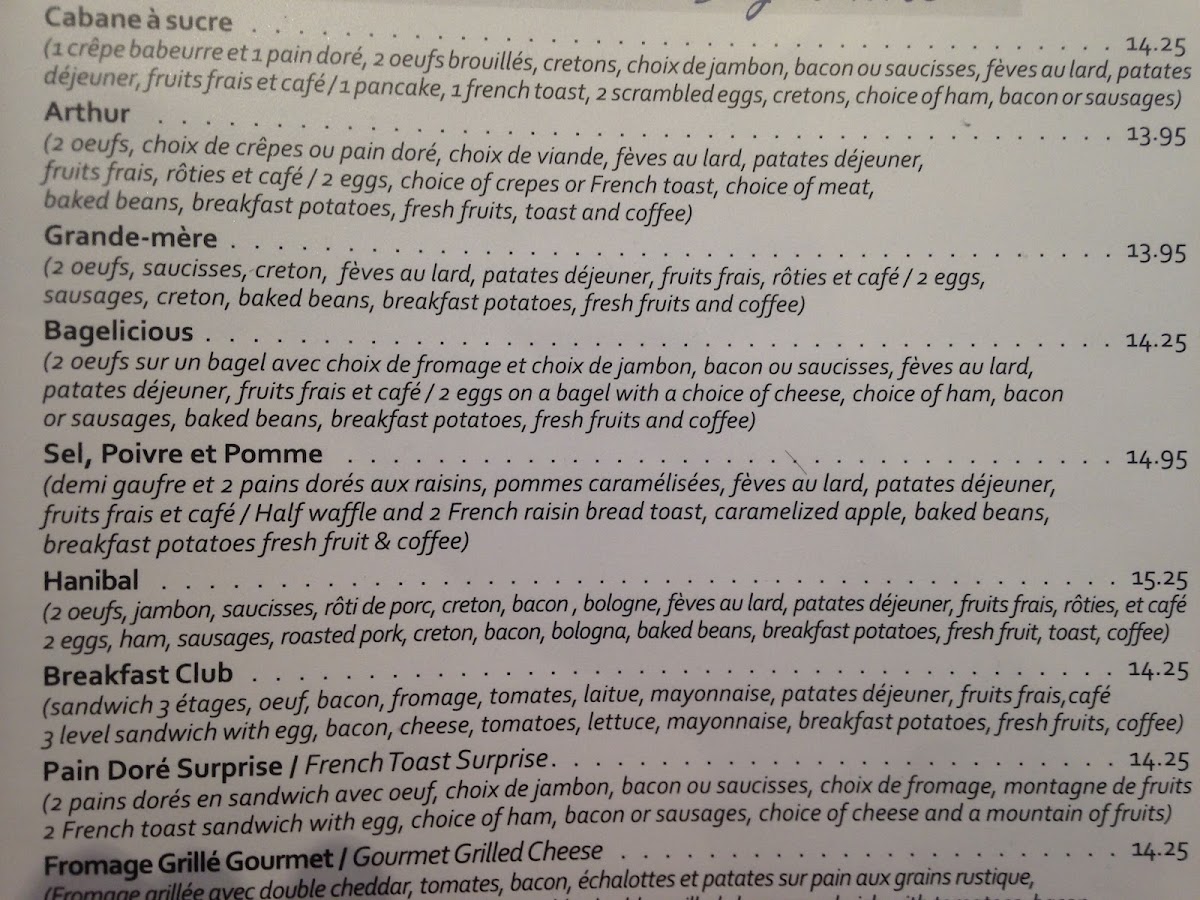 Tous les assiettes si dessus sont servis avec café, nos fameux patates à déjeuner et rôties / All plates are served with a coffee, our famous breakfast potatoes and toast